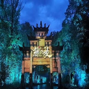 《劍門(mén)長(zhǎng)歌》以天然崖壁為幕,將劍門(mén)“天險(xiǎn)”獨(dú)一無(wú)二的崖壁與絢麗的燈光科技融合,借助全息投影、聲效互動(dòng)等科技手段以及綜合利用戲劇、舞蹈、音樂(lè)等藝術(shù)形式,再結(jié)合大型通關(guān)互動(dòng)游戲的植入,讓游客在行進(jìn)觀演中體驗(yàn)戶外真人“通關(guān)”游戲的趣味沉浸以及全感官的沉浸式體驗(yàn)。